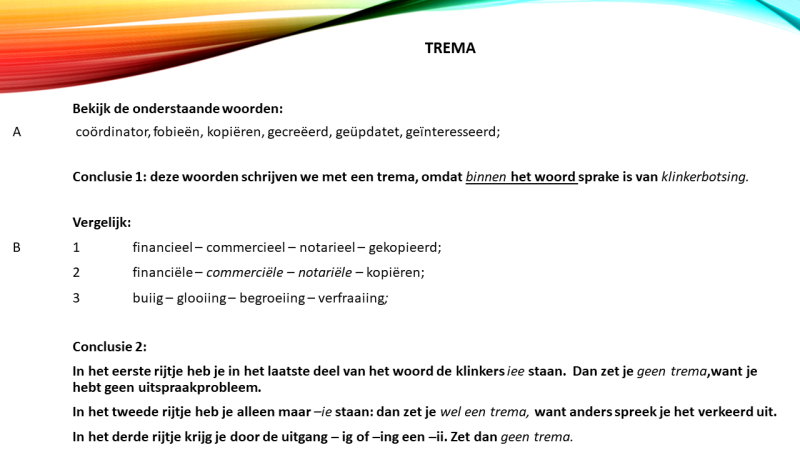 • oefening 3: trema, liggend streepje